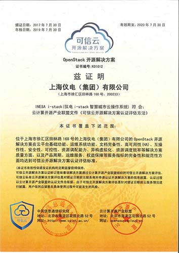 近日,上海仪电i-stack云操作系统成功通过“可信云开源解决方案”和“工信部ITSS云计算服务能力认证”年检认证,标志着上海仪电的云计算技术能力和解决方案继续保持行业领先。