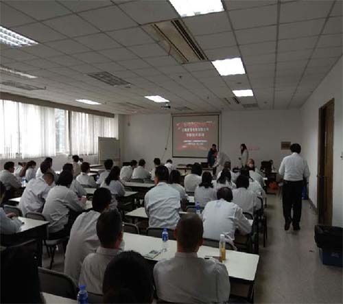 夏普电器公司环境品质管理部部长、科长、相关中层干部、能源管理人员、工程师、员工骨干等52名职工参加了培训,培训班里洋溢着认真学习的良好学风。夏普电器公司非常重视节能减排工作,在厂区有关走道内到处可见节能减排宣传语。